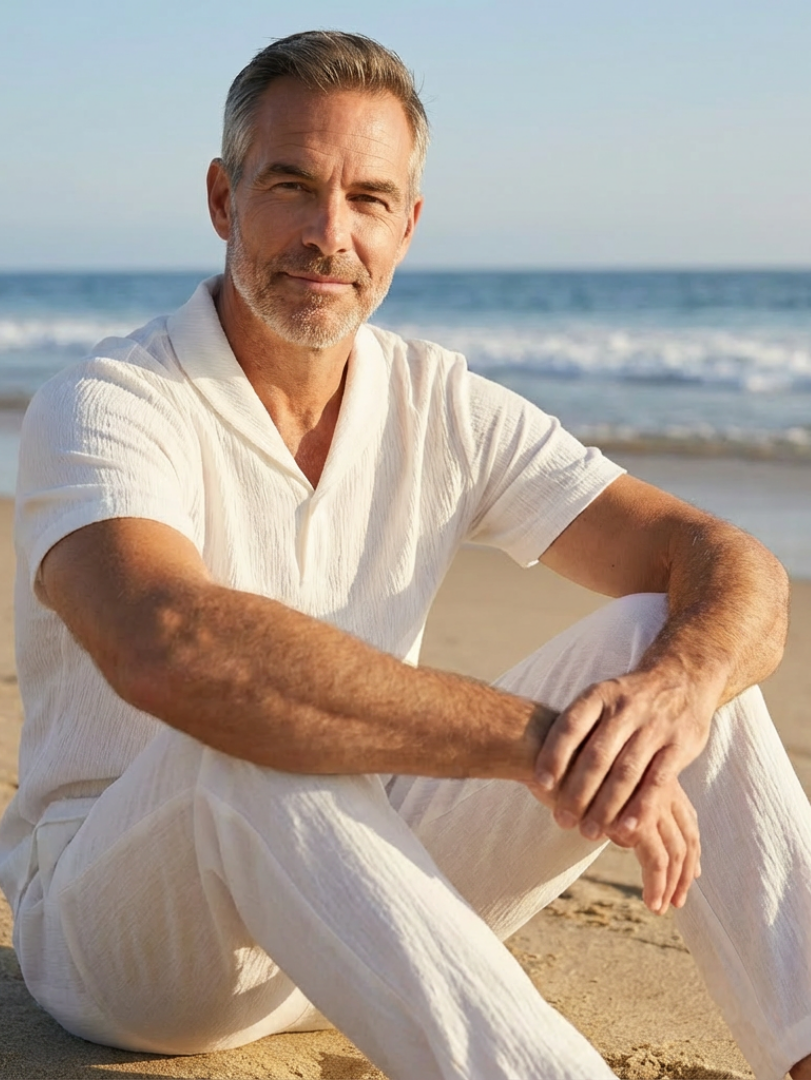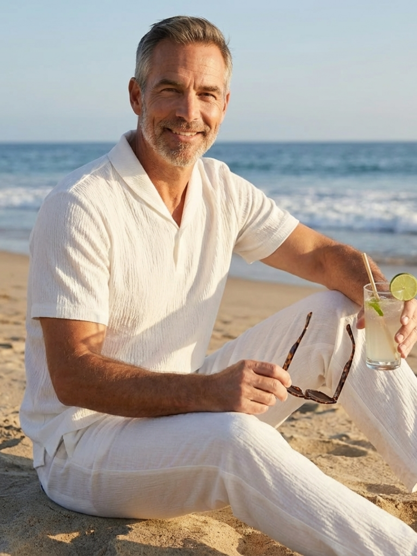 Wear the Cris Cotton Polo & Pantalon Set with clean sneakers or loafers for a relaxed yet put-together look, whether you’re running errands or enjoying casual outings. For a more refined vibe, swap in leather shoes and add a minimalist belt or watch — the coordinated cut and classic silhouette make it easy to look polished with minimal effort.
