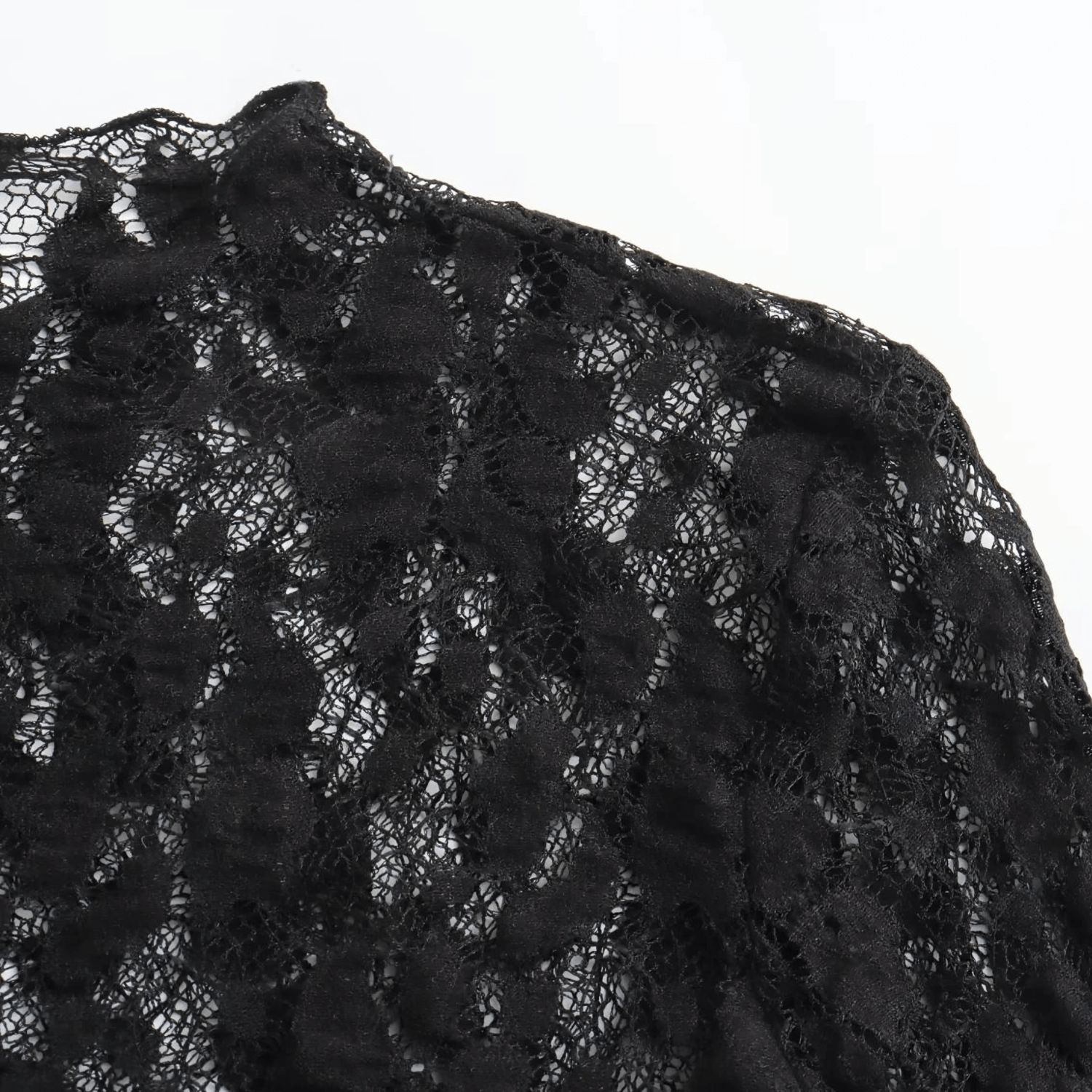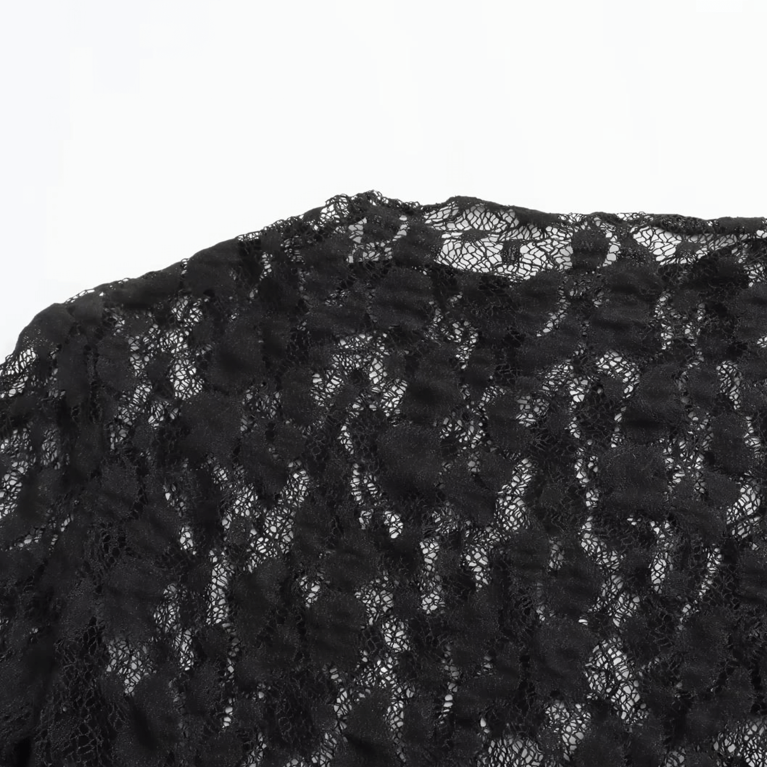 Body de renda com mangas longas. Fecho em botão na parte inferior. Ajuste justo ao corpo.