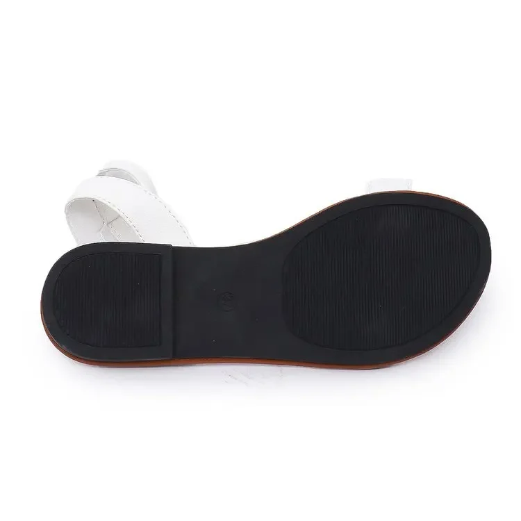 Large Size Seasonless Roman Style Sandals Women's Summer Open Toe Flat Bottom Metal Buckle Simple Design Student Shoes