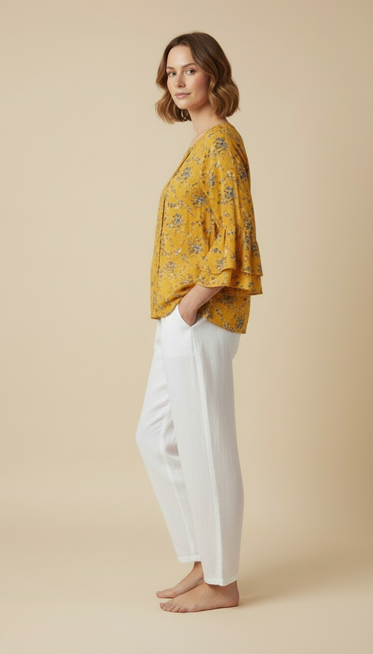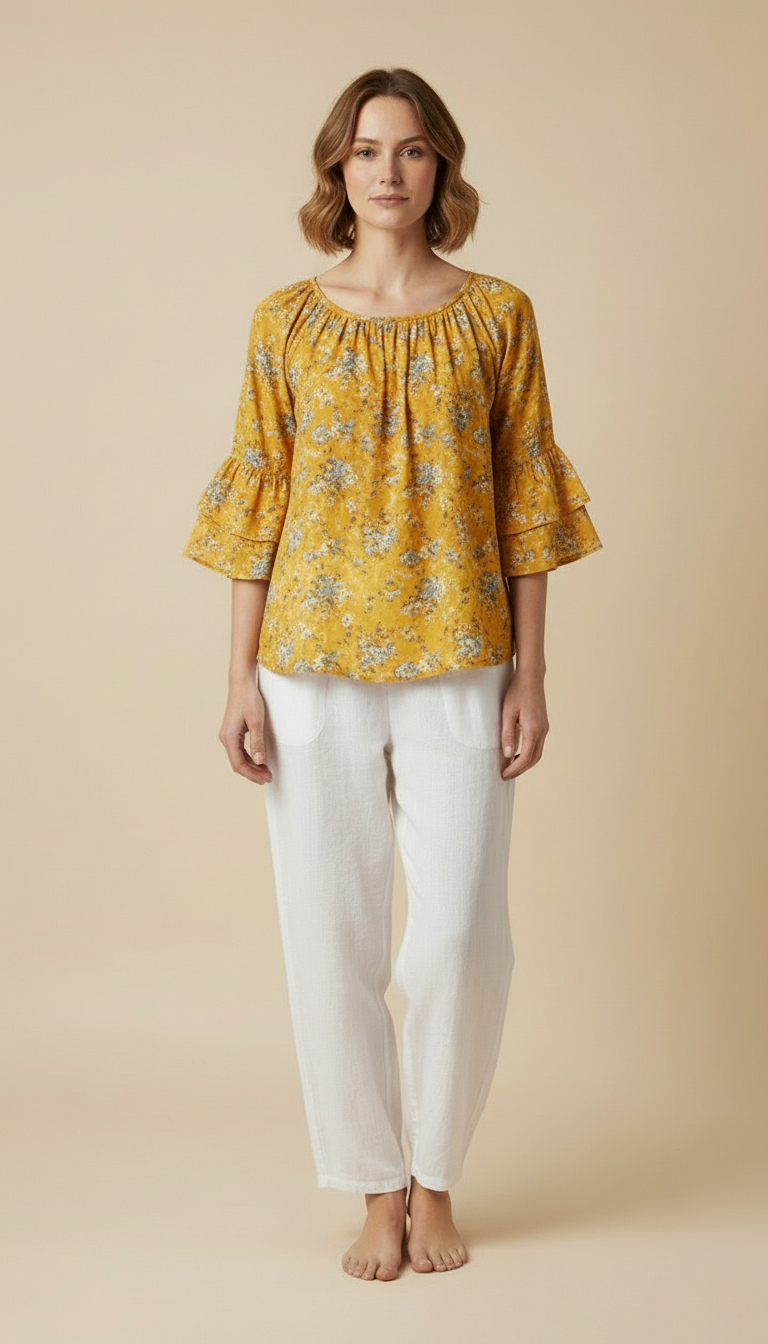 - ✔️ Ruffled Sleeves — Add a touch of femininity and playfulness to your look.